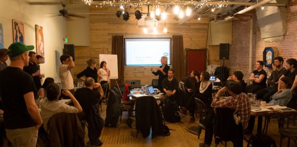 Guests: Thomas Kamholz of Communikey Festival, Taïca Replanski, who worked for several ICAS Festivals and prepared the ECAS Partner Meeting, Damian Romero of Mutek Mexico (Mexico City), Relja Bobic of Dis-patch (Belgrad) and Lauren Goshinski and Quinn Leonowicz of VIA Festival (Pittsburgh). Bobic and Goshinski were invited on behalf of the musikprotokoll festival to Boulder.